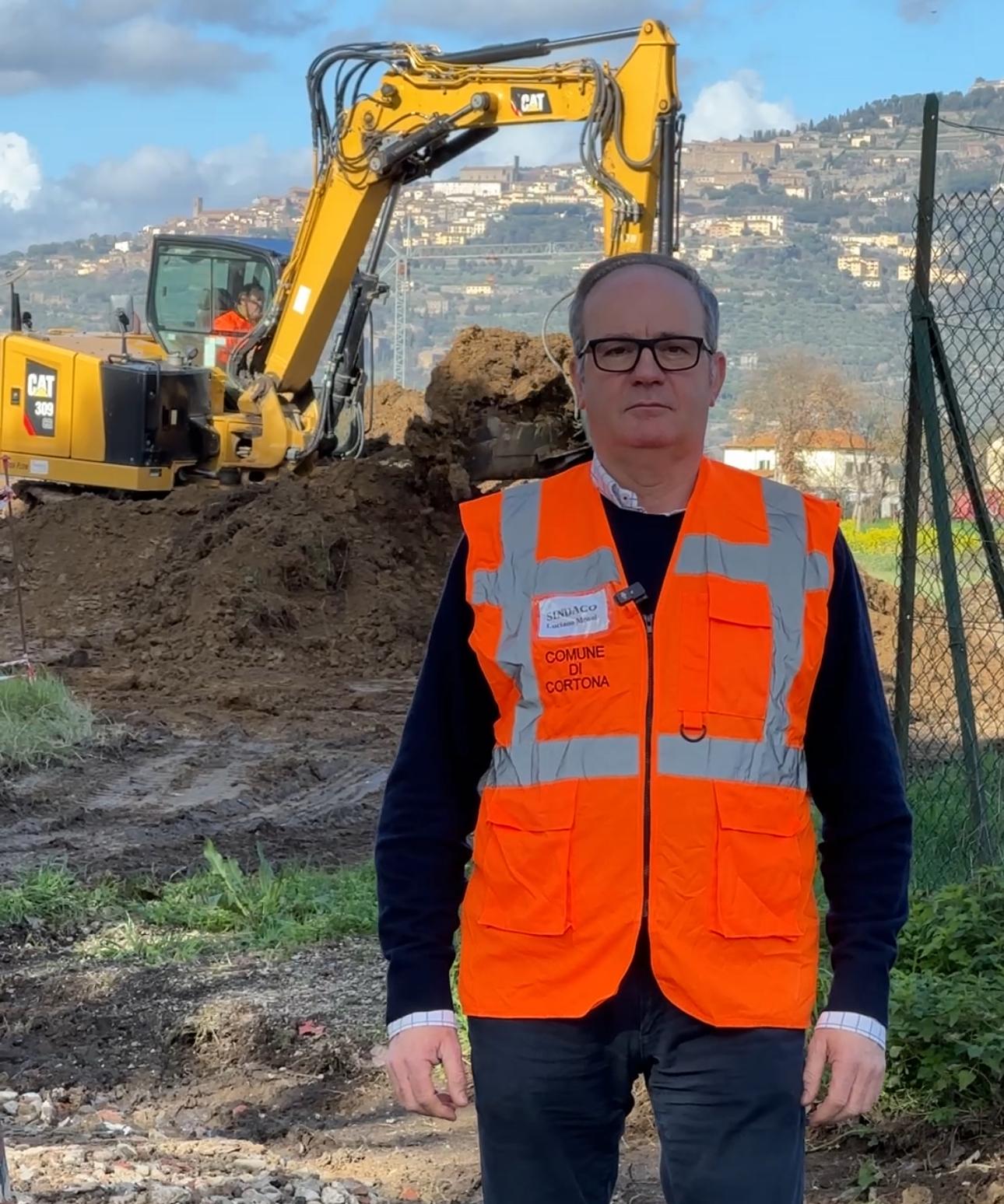 Sopralluogo del sindaco di Cortona al cantiere per l’estensione della rete idrica nell’area produttiva del Vallone. La frazione cortonese dove si trovano numerose aziende è interessata dai lavori per la realizzazione di un nuovo acquedotto. L’obiettivo è quello di provvedere all’approvvigionamento di acqua potabile le varie utenze della zona, utenze che in larga parte fanno riferimento ad attività produttive.